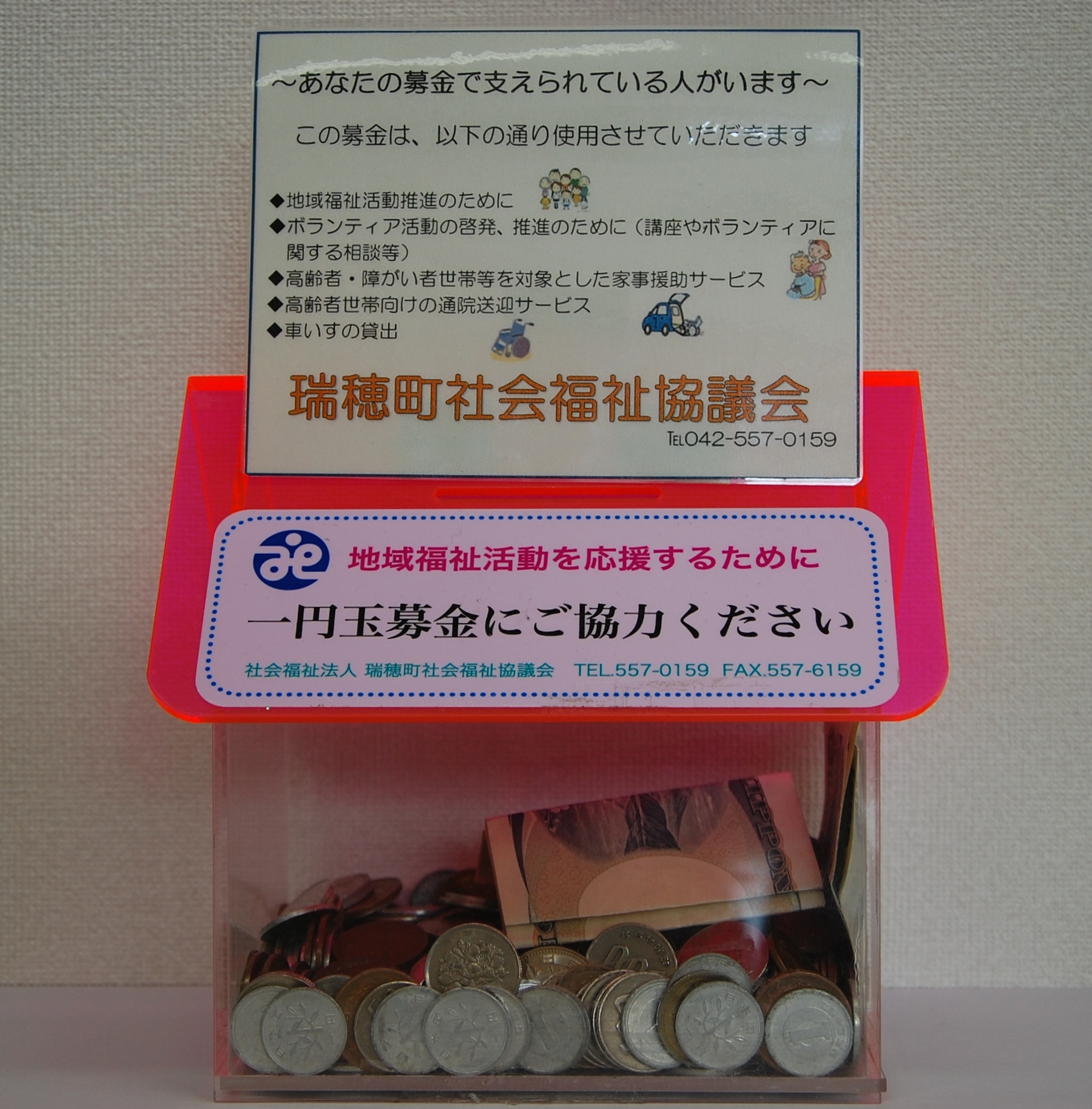 トップお知らせ瑞穂町社会福祉協議会> 令和7年度 一円玉寄付金箱のご協力ありがとうございました